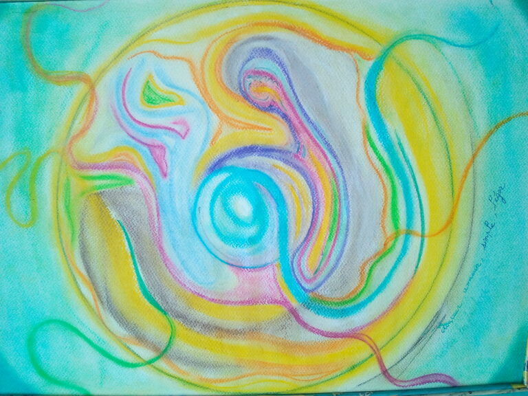 - Sa pratique pédagogique du dessin centré/mandala (image créée entre un centre et une périphérie) la conduit à observer, à comprendre, à théoriser un mode d’emploi naturel de ces formes centrées. Avec le temps cette compréhension l’amène à une pédagogie du mandala, une pédagogie naturelle de la croissance intérieure.